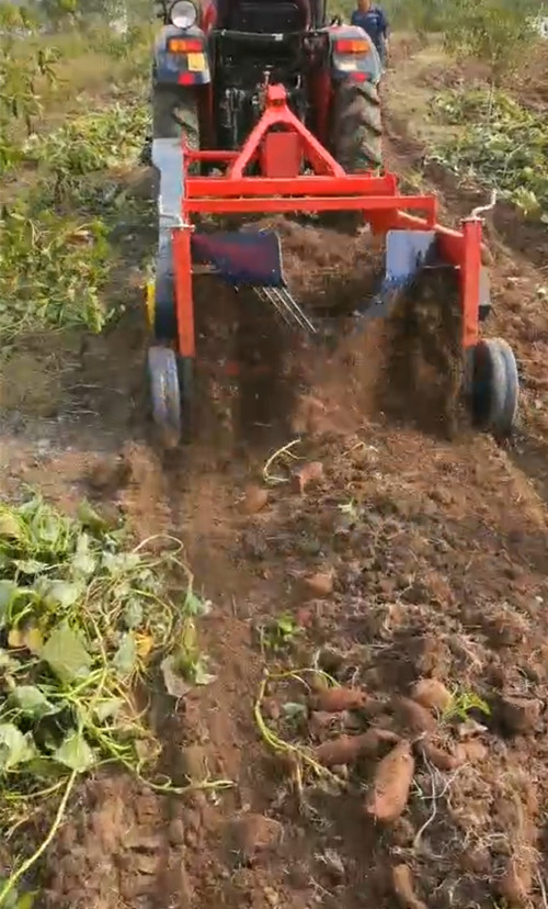 紅薯為地下產(chǎn)物,塊莖繁殖,人工收獲費時費力、勞動強度大且季節(jié)性強。此款收獲機可收獲:土豆、大蒜、洋蔥、壟種地瓜等根莖類作物,由傳動機構(gòu)、地輪、挖掘鏟、輸送鏈、清選篩等部件組成,可一次完成挖掘、篩選等工序,配套四輪拖拉機或手扶拖拉機,分別為中間輸出傳動和右側(cè)輸出傳動兩種。該機具具備收獲效率高、破損率低、運轉(zhuǎn)輕快無震動、不堵草、漏土快、結(jié)構(gòu)合理、使用壽命長等特點。是廣大薯類種植戶的理想收獲幫手。