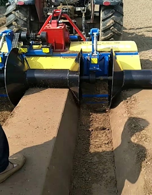 薯類起壟機排種可靠、成穴性好。無空穴,穴粒準(zhǔn)確、不損壞種籽、易于出苗、能高產(chǎn)等特點。產(chǎn)品的鋪膜裝置采用浮動式掛膜架和圓弧面橡膠壓膜輪。結(jié)構(gòu)簡單,調(diào)整方便,鋪膜張緊平整,膜邊自動壓實,膜上自動上土、省工、抗風(fēng),穩(wěn)定可靠。