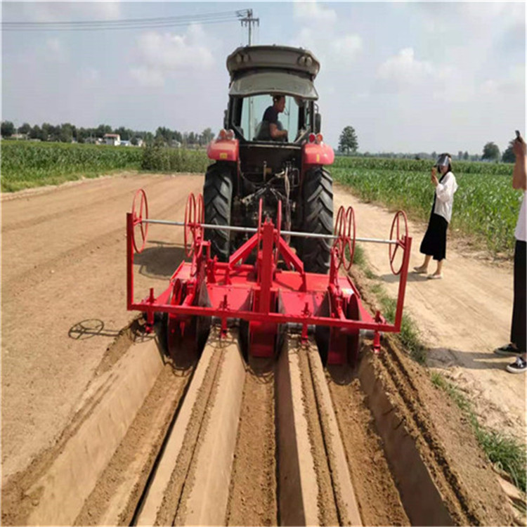 大蔥開溝機(jī)一般行距為80-85cm,溝底寬25cm,有7-10公分的軟土方便移栽,溝深30cm,一般使用40馬力以上拖拉機(jī)帶,一臺(tái)雙溝開溝機(jī),一天可以工作50畝左右。