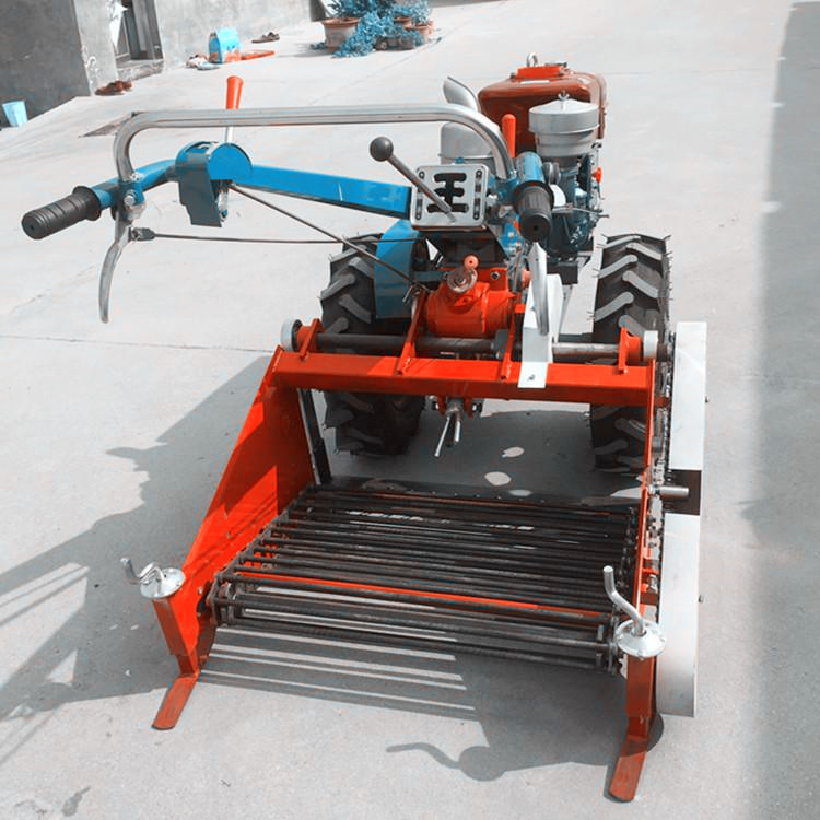山東菏澤曹縣魯富機械手扶式小型收獲機 配動20 馬力以上手扶拖拉機使用,方便易操作。采用挖掘裝置扒土角與輸送裝置升運角相一致的設計,大大減少了鏟后土壤堆積問題和漏挖 挖薯率低的弊端。履帶試傳送,破損率低傳送順暢。