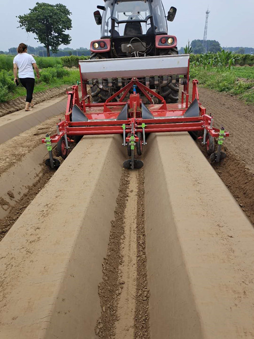 山東菏澤魯富機械加工生產(chǎn)各種型號的起壟機,紅薯起壟機,草莓開溝起壟機,蔬菜起壟機 玉米起壟機,山藥起壟機,大蔥開溝機 鮮姜開溝機,蘿卜起壟機,果樹起壟機等....起壟機機架前部固定有懸掛架,固定在機架前橫梁上的起壟鏟內(nèi)設(shè)置有兩個起壟鏟,左右兩側(cè)的卷膜輥提升臂與固定在機架下的兩個固定提升臂鉸接,卷膜輥裝置位于兩個卷膜輥提升臂之間,兩個膠卷輥由膠卷輥曲柄軸連接,與膠卷輥拉桿鉸接,固定在機架下的膠卷輥吊桿,在機架兩端的膠卷套筒內(nèi)套有兩個接地片,機架前端的兩個外側(cè)設(shè)有兩個接地輪。