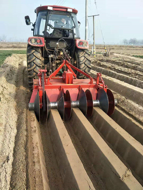 現(xiàn)在大棚草莓多采用南北向高壟種植,壟長7-10米,壟距80-90厘米,不便于草莓起壟機機起壟,通常人工起壟,但是400平米溫室3人工作需要1-2天或更長的時間,且勞動強度相對較大。為了減少種植者工作強度,縮短起壟的時間,我公司專注研發(fā)一款草莓專用起壟機機起壟機,改南北向高壟為東西向高壟,壟距90-100厘米,壟高35-40厘米,壟溝寬25-28厘米,壟面寬40厘米。溫室內(nèi)東西兩側(cè)各留1-1.5米的走道。使用草莓起壟機機,草莓壟一次成型,不需人工拍實,熟練工1人完成起壟僅需0.5天。工作效率是人工起壟的10倍以上。 我們一起了解一下小型草莓起壟機機獨特特點。